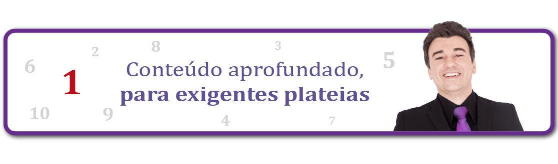*Para empresas privadas, palestras para equipes completas (profissionais de diferentes funções), profissionais e gerentes de vendas, líderes, diretores e gestores, com textos compostos sob aprofundado conteúdo de gestão de negócios e cultura corporativa.